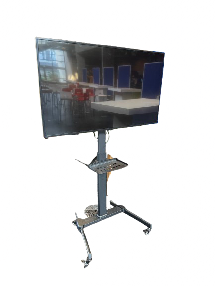 55″inch beeldscherm op standaard, makkelijk verrijdbaar door de wieltjes.