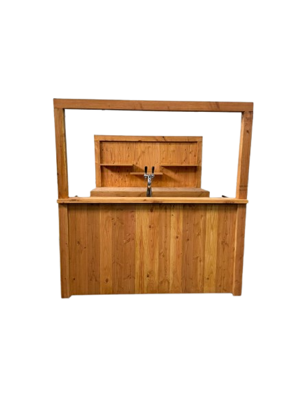 Bar steigerhout 4×0.8m met tap, spoelbak, achterwand en kast